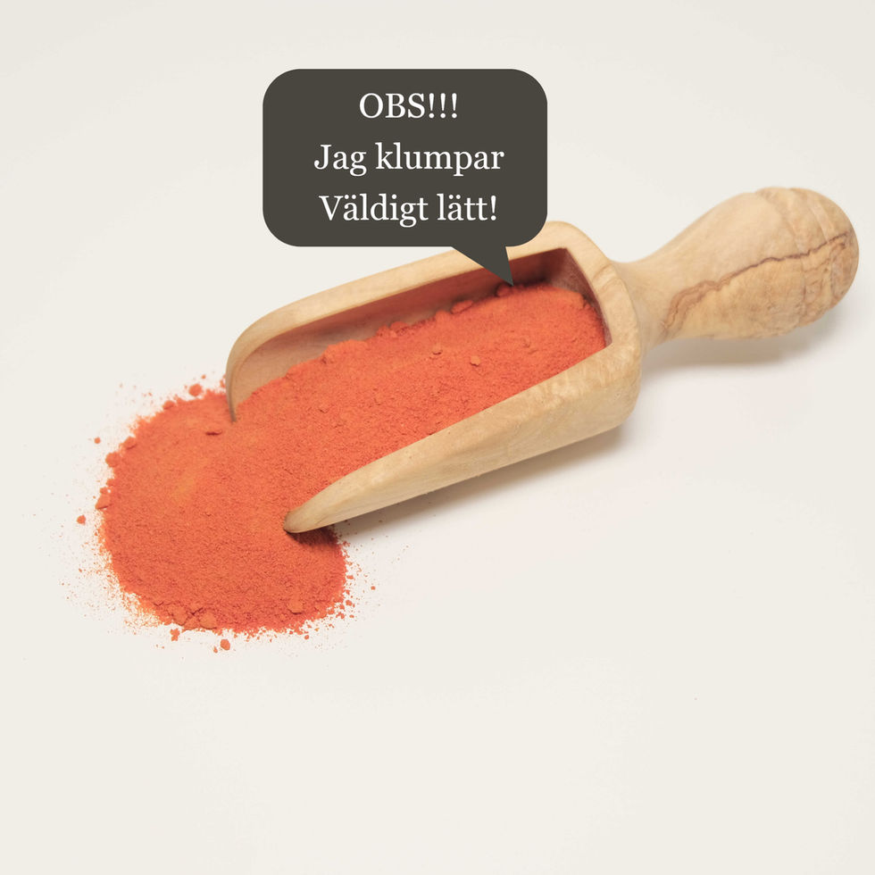OBS! Denna krydda klumpar extremt lätt i påsen eftersom vi inte använder klumpförebyggande medel i produktionsprocessen. Rent tomatpulver.